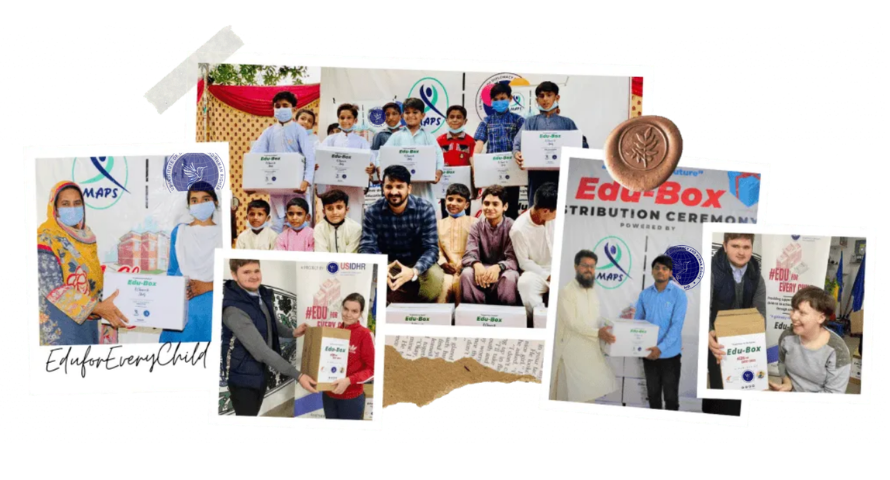 USIDHR has supported 200 vulnerable children ages 10-17 from rural areas in Pakistan. Together with our in-country partners from MAPS, we were able to bring the Edu Boxes to Pakistan and help 200 Pakistani children in danger of getting their education disrupted due to lack of resources. Children from different schools and different areas were identified and selected to be a part of the program. They all received Edu-boxes containing uniforms, shoes backpacks, school notebooks, supplies and more.